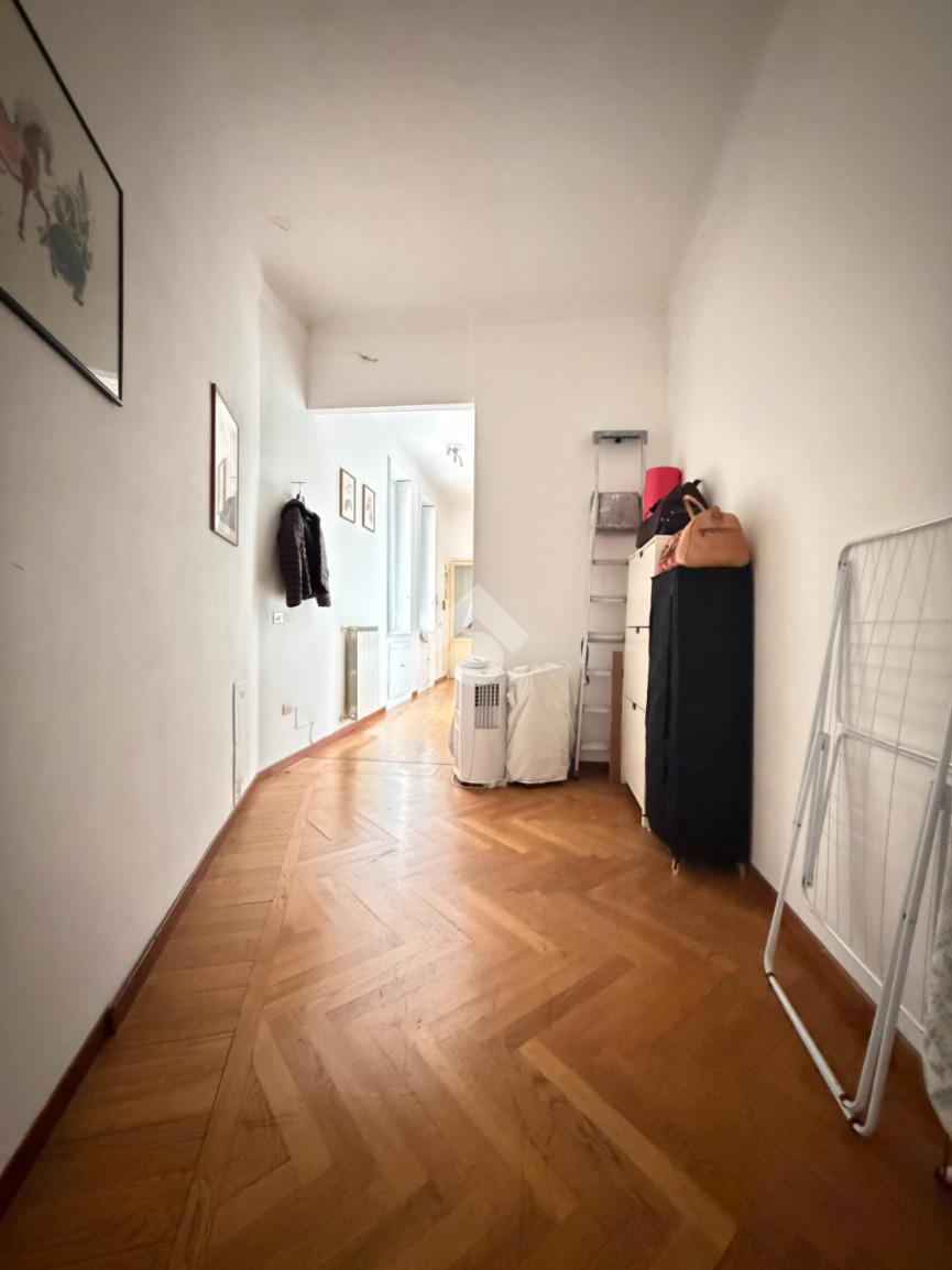 L’appartamento conserva materiali originari dell'epoca, come il parquet e gli stucchi decorativi al soffitto con altezza di 3,30 mt, i quali ne esaltano il fascino e l’autenticità, offrendo al contempo l’opportunità di una personalizzazione grazie alla parziale necessità di ristrutturazione.